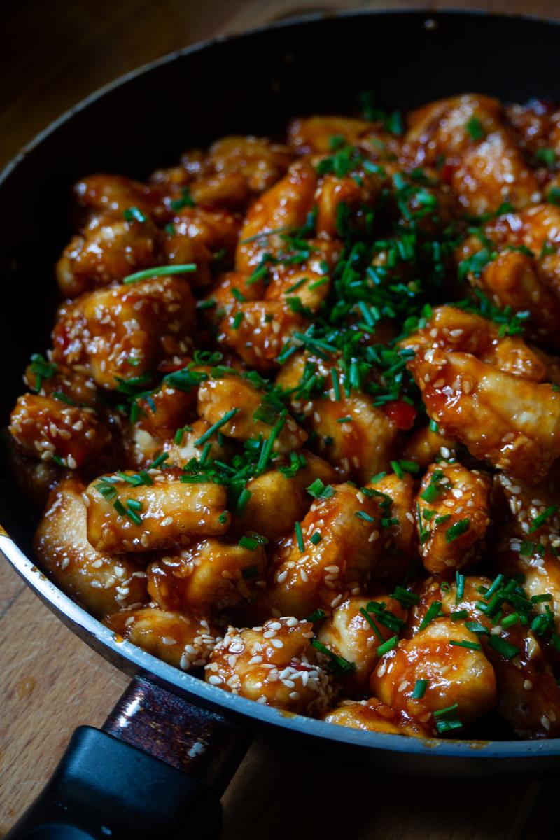 Gdy kurczak nabierze złotego koloru, wkraczają warzywa. Wrzucamy na patelnię pokrojone w plasterki cebule oraz papryki, które doskonale zbalansują smak potrawy. Jeśli tylko chcesz dodać trochę pikanterii, dorzuć także posiekane papryczki chilli. Jak głosi popularne powiedzenie, każda potrawa staje się lepsza dzięki orzechom nerkowca, więc nie zapomnij ich dodać do całości na koniec smażenia. A najlepsze w tym wszystkim jest to, że wszystko przygotujesz w ekspresowym tempie!